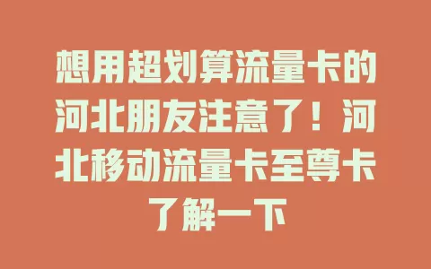 你是不是总发愁流量不够用,每个月都要额外花钱买流量?刷视频、玩游戏、办公学习,处处都离不开流量,流量费用成了一笔不小的开支。别担心,河北移动流量卡至尊卡就是你的解决方案。