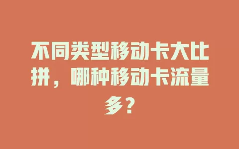你是不是总感觉手机流量不够用,每个月都要为流量超支而烦恼?我懂你的痛,我身边就有朋友,每个月流量用超,费用蹭蹭往上涨。现在市面上移动卡类型繁多,让人眼花缭乱,到底哪种移动卡流量多,这是很多人都关心的问题。