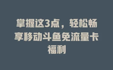 你有没有过这种情况,在斗鱼上看喜欢的主播直播,或者追精彩的赛事,正看得入迷呢,突然就因为流量不够而卡顿,甚至被迫中断,那种感觉别提多难受了。别担心,移动斗鱼免流量卡就是你的救星,只要掌握这3点,就能轻松畅享它带来的福利。我之前有个朋友,特别喜欢在斗鱼看游戏直播,每个月流量费都花不少,自从用了移动斗鱼免流量卡,按照下面这几个要点操作,不仅看直播再也没担心过流量问题,还省了不少钱呢。