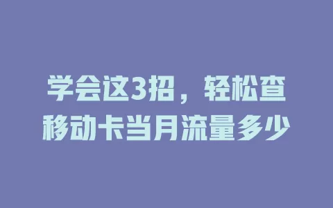 学会了这3招,以后查询移动卡当月流量多少就再也不是难事啦!你不妨试试看,看看哪种方法最适合你。如果你在查询过程中遇到什么问题,欢迎随时和我交流。