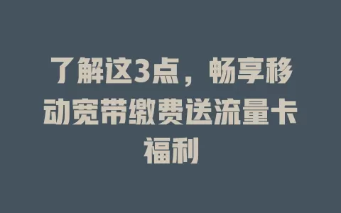 了解了这3点,你就能在移动宽带缴费送流量卡活动中少走弯路,轻松畅享福利啦。如果你按这些方法去做了,欢迎回来和我分享你的体验!