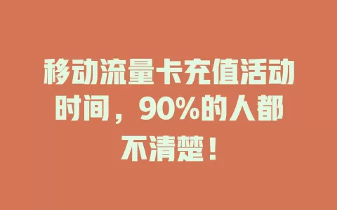 你有没有过这种情况,每个月为流量花费不少钱,却总是错过移动流量卡的充值活动?我身边就有朋友,一直稀里糊涂地按原价充值流量,后来才发现活动期间充值能省好多钱。其实,很多人都和他一样,不清楚移动流量卡充值活动时间,白白多花了冤枉钱。