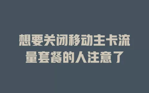 你要是按这些方法去试试关闭移动主卡流量套餐,要是有啥问题或者效果咋样,都欢迎来跟我分享!