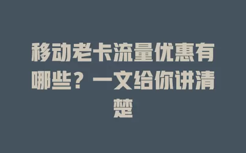 咱就直说了,好多人手里都有移动老卡,可这流量优惠到底咋样呢?今天就来好好唠唠。