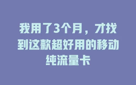 我用了3个月,才找到这款超好用的移动纯流量卡。真心觉得找流量卡别心急,多做做功课,多试试,总能找到适合自己的。希望我的经验能帮到大家,都能用上满意的流量卡!