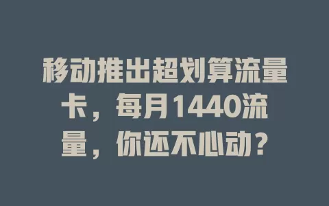 全网快报,移动最近推出了一款超划算的流量卡,每月竟有1440流量。这对于流量需求大的朋友们来说,简直是福音。