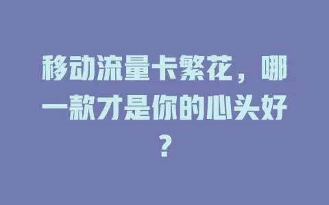 全网流量卡的江湖那叫一个热闹,移动流量卡繁花系列更是其中的焦点。今天咱就来唠唠,这里面哪一款才是你的菜。
