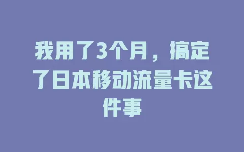 咱就是说,去日本没个好用的流量卡可太不方便了。我当初也是费了好大劲,花了3个月才把日本移动流量卡这事给整明白。