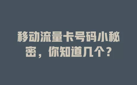 移动流量卡的号码段也有讲究。不同的号码段可能代表着不同的特点。比如说,有些号码段可能信号覆盖更好,有些则可能在某些地区使用更优惠。举个例子,139开头的号码段,那可是移动的经典号段,很多老用户都喜欢用这个。它给人的感觉就是很靠谱、很稳定。再比如说,188号段,相对来说比较新,可能在网络支持一些新功能方面会更有优势。您要是打算选移动流量卡,不妨了解一下各个号码段的特点。根据自己平时的使用场景来选,如果经常在某个特定区域活动,就看看哪个号码段在那信号强、优惠多。这样选出来的号码,用起来才更顺心呢。